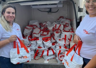 As empresas entregaram para seus colaboradores uma cesta de Natal bem mais completa para preencher a mesa na festa de fim de ano. Enquanto o Fundo Recreativo destinou parte da sua verba anual para incrementar essa entrega com um kit da Soft Pig, o qual contia três produtos em uma bolsa térmica.